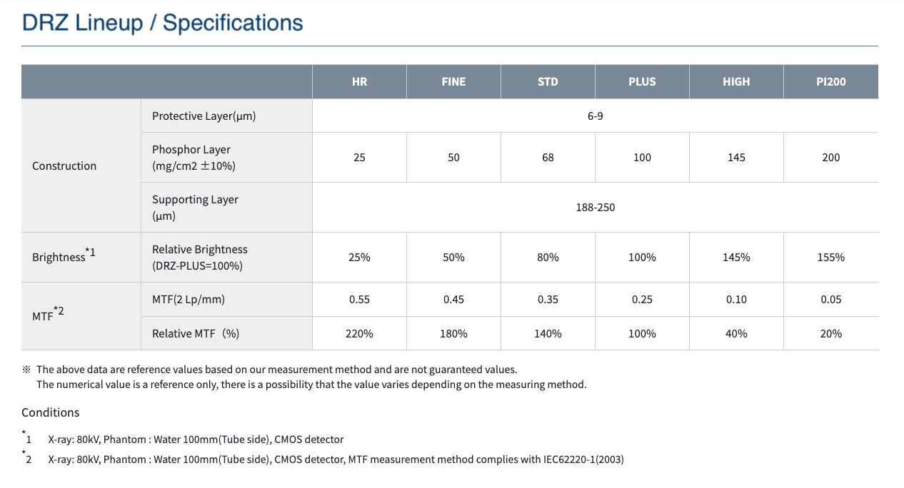 DRZ screens are available in a wide range of phosphor layer deposition densities.
